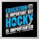 Funny hockey thematisch werfen Poster mit blau-weiß Text auf einem schwarzen Hintergrund liest Bildung ist wichtig aber Hockey ist wichtig!