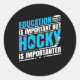 Funny hockey thematische Aufkleber mit blau-weiß-Text auf einem schwarzen Hintergrund liest Bildung ist wichtig aber Hockey ist wichtig!