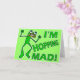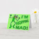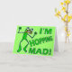 Dieser niedliche grüne Frosch ist wütend. Der grüne Text sagt: "Ich bin verrückt!" Wenn Sie Reptilien / Amphibien Cartoon und lustige Tierpistolen mögen, das ist das Design für Sie. In der Grußkartenversion heißt es drinnen: "Ich habe fast den Frosch vor deinem Geburtstag", aber du kannst es für jeden Anlass anpassen. Es wäre großartig für ein verspätetes Geschenk oder ein Geschenk, das nah ist, zu spät zu kommen. Die Hintergrundfarbe auf den Karten, Tasten, Aufklebern, etc. kann durch die Schaltfläche "Anpassen" oben geändert werden. ZUM VERÄNDERN FÜR EINE ANDERE GELEGENHEIT: Klicken Sie auf "Anpassen", gehen Sie in die untere Ansicht der Karte, und wählen Sie dann "Text ändern" im Feld "Geburtstag!".
