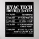 Funny Hvac Tech Hourly Rate Chart Men Women Poster
