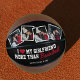 Leckerei deinen Freund zu diesem einzigartigen Basketballgeschenk aus schwarz-rotem Valentinstag mit 4 quadratischen Fotos, die du durch dein eigenes ersetzen kannst, und dem lustigen Sprichwort "Ich Liebe meine Freundin mehr als Basketball, und ja, sie hat mir das gegeben".