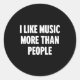 Funny I Like Music More Than People For Introverts Runder Aufkleber