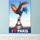 Hilarious 3D Pixar‑style “I Love Paris” artwork brings a playful, animated twist to one of the world’s most iconic landmarks. A gigantic rooster — full of French attitude and cartoon charm — swoops down and lands squarely on the Eiffel Tower, instantly bending the metal frame and sending rivets and beams popping loose. The exaggerated proportions, bright colours, and soft Pixar‑like lighting give the scene a lively, cinematic feel, turning Paris into a stage for hilarious, delightful chaos.