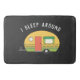 Die lustige Türmatte hat "Ich schlafe herum" anpassbaren Text mit niedlichem, gelb und grün Retro-Stil RV Camp Trailer auf schwarzem Hintergrund. Ideal für diejenigen, die den Lebensstil des RV-Campings in Campingplätzen, Rv-Parks und abseits der Rastplätze Liebe haben - wo das Parken Ihres Riggs an mehreren Plätzen für Tage, Wochen oder Monate nur eine Lebensart ist.