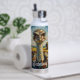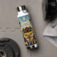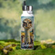 A cute personalized water bottle with an impasto close up of an ostrich on a ranch.