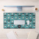 Funny Jumping Cat Faces auf Aquamarinen Monogramm Schreibtischunterlage