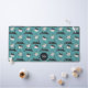 Diese lustige Schreibtischmatte ist perfekt, um sich selbst behalten oder als Geschenk an den Freund oder Verwandten zu geben, der von Katzen verrückt ist. Es zeigt ein Muster lustiger Cartoon-Katzengesichter und springende schwarze Katzen auf einem aquamarinen Hintergrund. Ein schwarzer Kreis-Banner am unteren Rand hält Ihr Monogramm in Weiß.