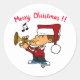 Funny Boy in Weihnachtsmannmütze geblasen Horn Weihnachten Klassischer Rundsticker
