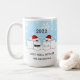 A funny and festive holiday mug design featuring toilet paper rolls wearing Santa hats saying "Just Roll With It." A light-hearted laugh at the toilet paper shortage during COVID quarantine and events. Personalize the text and add your names.