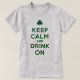 St. Patrick's Day shirt with Irish shamrock and funny slogan - Keep Calm And Drink On - parody of the WWII British propaganda poster. Available also on dark apparel.