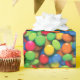 Frohes, süßes Geschenkpapier mit Süßigkeiten in einem neuen Design, das voller Farbe und Spaß ist, Geburtstagsgeschenke oder Gastgeschenken zu verpacken.