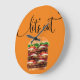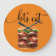 Fantastische Küchenwand mit einem gestapelten Hamburger im Hintergrund und humorvolle Textgrafik, die lasse zu essen sagt. Das macht eine großartige Höhlenuhr, eine neue Küchenuhr oder ein Geschenk für Typ.