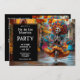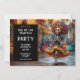 Eine lustige Día de Muertos Party Einladung, die Tradition und Moderne verbindet. Das Design zeichnet sich durch eine schön detaillierte Calavera auf der rechten Seite der Einladung. Der Schädel ist fasziniert von lebhaften, farbenfrohen Mustern, die sowohl Festlichkeit als auch kulturellen Reichtum ausstrahlen. Seine künstlerischen Details bringen ein Gefühl von Feier und Ehrfurcht und machen ihn zu einem auffallenden Brennpunkt. Auf der links Seite der Einladung befinden sich die Veranstaltungsdetails auf einem schwarzen Hintergrund mit knalligem weißem Text. Der schwarze Hintergrund bietet einen starken Kontrast, der es den lebhaften Farben der Calavera ermöglicht, sich zu überzeugen und ein visuell ausgewogenes und ausgeklügeltes Design zu schaffen. Das Layout des Textes ist sauber und organisiert, sodass die Informationen klar und leicht lesbar sind und die Ästhetik insgesamt verbessert wird. Die Rückseite der Einladung spiegelt das Frontdesign wider, mit der gleichen detaillierten Calavera auf der rechten Seite und dem anpassbaren Textbereich auf der links. Der schwarze Hintergrund mit weißem Text wird fortgesetzt und bietet Platz für Veranstaltungsdetails, persönliche Nachrichten und Kontaktinformationen. Diese dynamische Kombination aus der farbenfrohen Calavera vor dem schwarzen Hintergrund prägt das Wesen von Día de Muertos und verkörpert sowohl seinen lebendigen Geist als auch seine tiefere kulturelle Bedeutung.