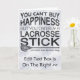 Kundenspezifische Grußkarten und Einladungen mit originalem Game Face Gear Design. Einfach zu bearbeitende Vorlagen, Vordertext und Insidertext können auf das gewollt geändert werden! Ideal für alle Sportwahnsinnige Familie und Freunde. Lacrosse Design, Text liest: "Glück kann man nicht kaufen." Aber man kann einen Lacrosse Stick kaufen, und das ist so ähnlich. Grosses Design, ideal für T - Shirt und Liebhaber!