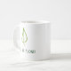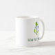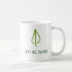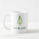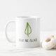 Diese lustige Tasse enthält den Satz "Lebe mich allein!". und ein grünes Blatt.