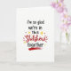 This greeting card features a simple off-white background with a centered message that feels honest and supportive. The text reads, “I’m so glad we’re in this Shitshow together,” with most of the words in black, casual script. “Shitshow” stands out in large red brush-style lettering right in the middle, with short red lines around it like little bursts. Small yellow stars and a few tiny red hearts sit near the main word, adding a sweet touch without taking over the design. The final word “together” appears near the bottom in black script and is underlined by a thick red brushstroke. Overall, it mixes humor with affection, like a note to someone you trust when life gets messy ❤️💌.