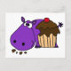 Funny Lila Hippo Eating Cupcake Postkarte