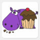 Funny Lila Hippo Eating Cupcake Quadratischer Aufkleber