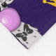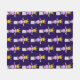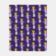 Fleecedecke mit einem charmanten, aber lustigen Muster. Entworfen mit einem skurrilen Lama, das eine große rosa Blase beim Kaugummi bläst. Tragen einer Goldkrone und einer schwarzen Bogen-Krawatte. Dunkler lila Hintergrund.