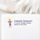 Adressieren Sie Etiketten mit einem skurrilen Lama, das eine große rosa Blase weht. Tragen einer Goldkrone und einer schwarzen Bogen-Krawatte.