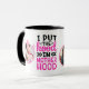 Fügen Sie drei Fotos hinzu (quadratische sind perfekt, da sie automatisch in den runden Rahmen passen), um diese moderne trendige Geschenkszenie für die MAMA zu personalisieren. Perfekt für den Muttertag, den Geburtstag der Mama, die Weihnachtszeit der Mutter oder als Dankeschön oder bald ein gutes Geschenk machen. Die Fotos können von Kindern, Mama, Fotos sein, wie gewünscht. Die Farben sind auffallend rosa und schwarz. Der Ausdruck lautet "Ich lege die Hood in die Mutterschaft".