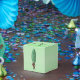 Diese Geschenk- oder Gastgeschenk-Box ist grün mit einem lustigen Mann in einem braunen Anzug mit einem großen grünen Pickle-Kopf mit einem überraschenden Blick auf das Gesicht auf der Vorderseite. Passen Sie Ihren Text auf der oberen Klappe mit der Vorlage an.