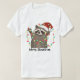 Ein lustiges Winterferiendesign mit niedlichem Waschbär, der in Weihnachtsbeleuchtung verstrickt ist und sagt: "Frohe Weihnachten"