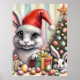 Adorable Fehlanfall Osterkaninchen eins mit einer Weihnachtsmannmütze mit einem Ostereier dekoriert Weihnachtsbaum KI generiert