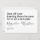 Lass deinen Freunden und Verwandten, dass du mit dieser lustigen Save the Date-Karte ein neues Set hast - der Text lautet "Dust off your dance schuhe, weil wir ein neues Date Set haben".