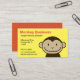 Mit dieser lächelnden Affen-Visitenkarte Bananen gehen! Ein lustiges Design für Kinderbetreuung, Babysitter, Kinderunterhaltung, Babyläden und Firmen mit einem spielerischen Thema. Besuchen Sie Jenn's Doodle World für mehr lustige Visitenkarten und skurrile Tierdesigns.