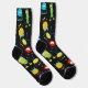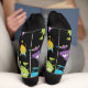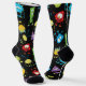 Fun Crew Socken mit schwarzem Hintergrund und viele alberne Monster in Gelb, Blau, lila, Rot und Grün!