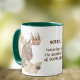 "SORRY...Gestern war die Frist für alle BESCHWERDEN", sagt diese Tasse für das Büro oder die Zuhause. Auf beiden Seiten des stilisierten Textes befindet sich das Aquarellbild eines Elchs, der eine Zeitung liest.