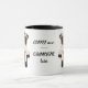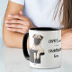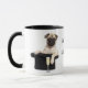 Dies ist eine niedliche Tasse, die ein Lächeln auf das Gesicht Ihrer Büromitarbeiter bringen wird! Es ist mit einem bezaubernden, blassfarbenen Mops-Hund ausgestattet, der auf einem schwarzen Hut sitzt. Vor ihm ist ein Glas Sekt mit blubsauer Champagner. Das Bild wird zweimal auf der Tasse gedruckt, mit dem Text dazwischen "KAFFEE jetzt - CHAMPAGNE später". Der Text befindet sich in einem anpassbaren Feld, sodass Sie ihn ändern können, wenn Sie möchten.