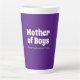 Funny Latte Tasse für Muttertag oder jeden Tag, um besondere Mütter zu ehren! Heller lila Hintergrund mit weißem Text, der "Mutter der Jungen" lautet. Hier kann Wein sein."