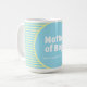 Die Tasse für den Muttertag oder für jeden Tag, um besondere Mütter zu ehren! Blau und gelb pastellgestreifter Hintergrund mit weißem Text, der "Mutter der Jungen. Hier kann Wein sein."