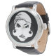 Uhr, Klassische Damenuhr mit schwarzen Lederarmband