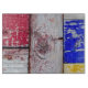 Eine graue Holzstruktur mit Knoten, Schnüren, Nagelköpfen und Schälchen alter Farbe. In den Tagen der Vergangenheit wurden einige Teile dieser Oberfläche rot, blau und gelb gestrichen. Stilvolle avantgardistische Produkte für jedermann.