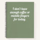 Das perfekte Notizbuch für einen der "diese" Tage...oder Wochen. Die moderne, fett-weiße Typografie mit hübschem, schlauer grünem Hintergrund lautet: "Ich habe heute nicht genug Kaffee oder mittlere Finger".