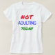 "NOT ADULTING HEUTE" ist der humorvolle Text auf diesem T - Shirt. Es ist hell rot, blau und grün, und das "O" von NOT ist mit einem doodled Gesicht versehen.