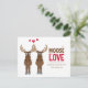 Niedliches Whimsical Elch Sprichwort "es Elch ist Liebe". Dieses Design bietet Jubiläum niedliche lustige Einladungen, perfekt für Hochzeitstag Jubiläumsfeiern Partys, eine Feier, eine Spaß Elche Tierherz Liebe, es Elche Liebe Zitat, ein kreativer cooler Typografie-Schriftart, trendige moderne Lichtart, Ehemann Ehefrau, rote Cartoon grafische Illustrationsherzen, niedlich Jubiläus Postkarte