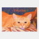 Tablettenkatzengeschenk Hübsche, niedliche, orangefarbene, schelzende Katze, die sich niederlegt. Kupfer, Ingwer-Farben. Maßgeschneiderte handgefertigte Papierfolien von 3. Personalisieren Sie Ihren Namen. Bildrecht Marg Seregelyi Fotografie.