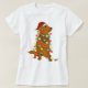 Ein lustiges Winterurlaubsdesign eines niedlichen Hundes, der in Weihnachtsbeleuchtung verstrickt ist.