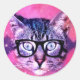Funny Niedlich Kitty Glasses Cat Runder Aufkleber
