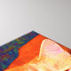 Die niedliche, sonnige Tischtenniskatze. Digital gemalt Foto. Helle orangefarbene Katze mit orangefarbenen, braunen Augen. Mischsche aussehende Katze gelegt. Kupfer, Ingwerfarben. Niedlich umhüllte Leinwand für Katzenliebhaber.