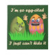 Ein niedlicher Ostereier-Cartoon mit zwei lackierten / gefärbten Eiern, die sich im grünen Gras verstecken. Man wird getarnt und nimmt die Jagd sehr ernst. Das andere, bunte Ei ist zu aufgeregt, um sich zu verstecken. Es winkt zu den Armen, grinsend. (Bei den meisten, aber nicht allen Produkten) im Text mit Worn steht: "Ich bin so eizitiert, dass ich es einfach nicht verbergen kann." Dieses lustige, alberne Comic-Design ist einzigartig und originell und wäre niedlich, für eine Ostereierjagd oder den ganzen Frühling, für ein Kind / Baby oder einen jugendlichen Herzerwachsenen zu tragen.