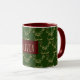 Individuelle Name Olivia, Funny Niedlich Imitate Gold Rentier Muster auf Grün und Maroon Hintergrund Fügen Sie Ihren Namen oder Text, Combo Tasse, Einzigartiges Weihnachtsgeschenk für Kinder jeden Alters
