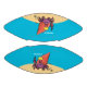 Der Cartoon ist hell und farbenfroh, lila und orange mit blauem Hintergrund. Bring mich zum Meer!