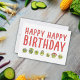 Das ist eine sehr lustige Geburtstagskarte mit niedlichen kleinen Gemüsesymbole. Mit dieser Karte kann man die Leute zum Lächeln bringen. Eine lustige Gruppe von Brüssel sprießt mit winzigen Hüten und wackeligen Augen, die direkt auf Sie schauen. Herzlichen Glückwunsch zum Geburtstag in großer roter, zeitgenössischer Formulierung. Personalisieren Sie es mit Ihrer eigenen Nachricht.