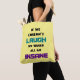 Ein lustiges und niedliches Zitat-Sprichwort, das lautet: Wenn wir nicht lachen könnten, würden wir alle verrückt werden. Wie wahr vor allem heute in unserer verrückten Welt. Set auf gelbem Hintergrund.