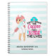 Spiral Notizbuch mit einem humorvollen Sprichwort: Zuerst trinke ich den Kaffee, dann rettete ich das Leben. Ideal für Krankenschwestern. Eine Darstellung einer Krankenschwester, die eine niedliche, altmodische Krankenschwester trägt und eine riesige, hypodermische Nadel trägt. Hellblau und weiß gestreifter Hintergrund.